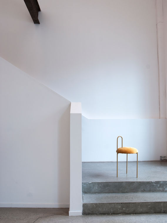 FLAMINGO is a stool inspired by the graceful flamingo. Minimal in expression, it works as both a sculptural object and a functional seat, with a padded cushion and handle for easy movement.